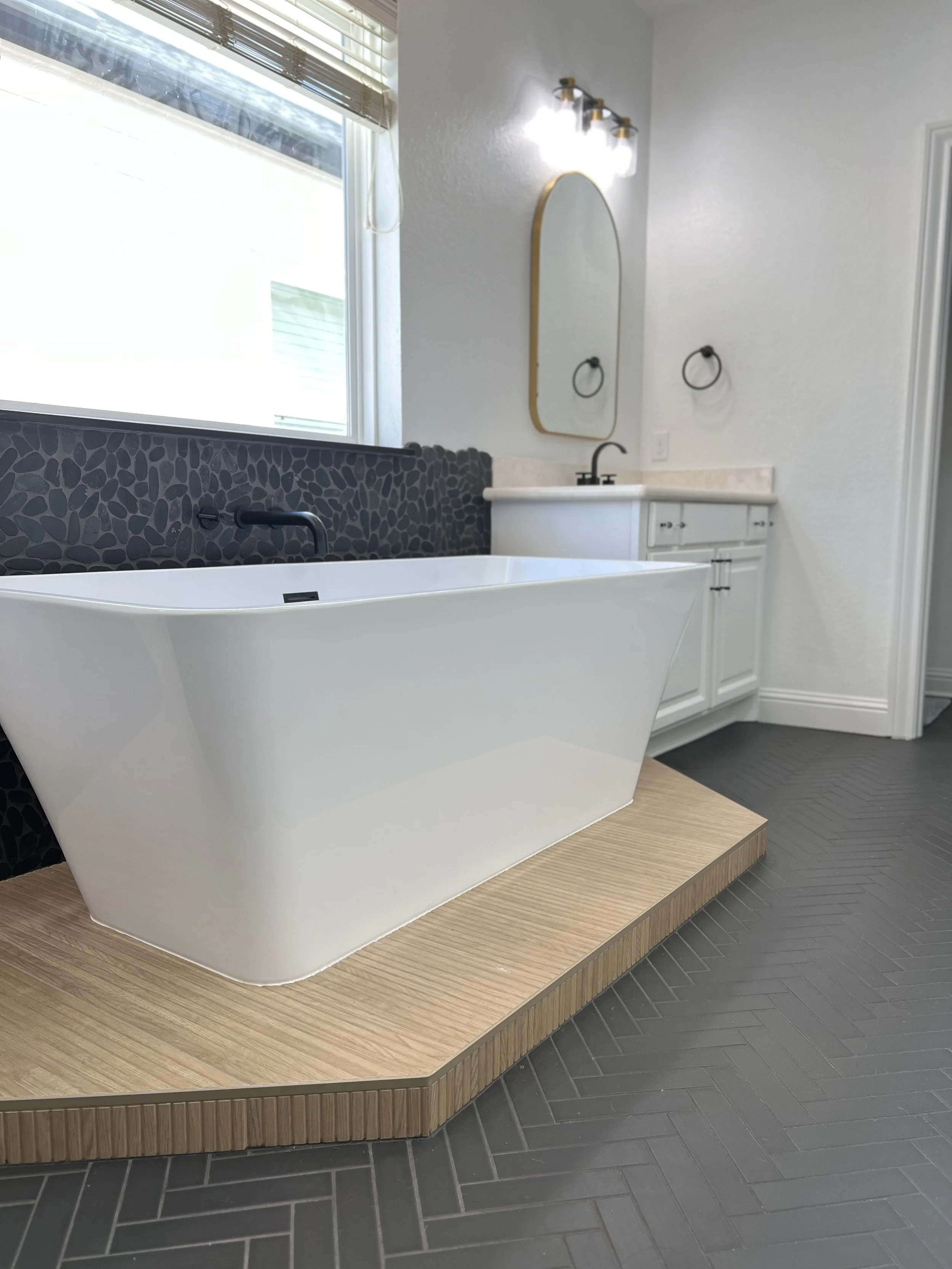 - Make it Uniquely Yours: Add a design element like a tiled platform or tiled backsplash to make your tub its own space.